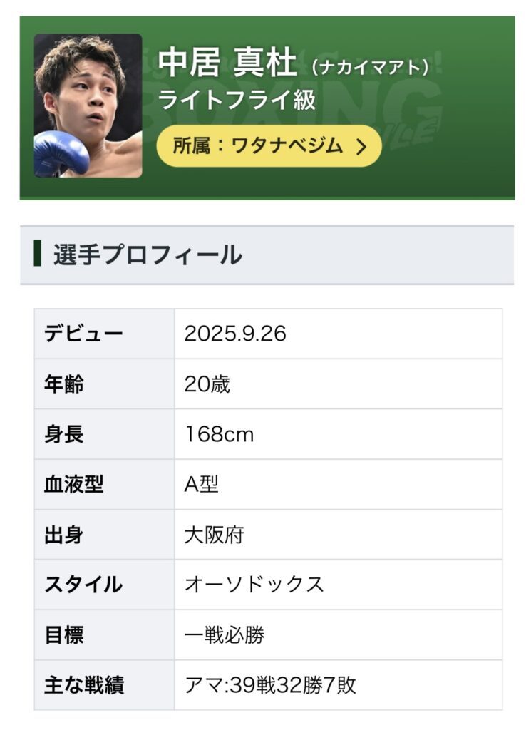 その中居選手ですが、先日9月26日(金)に後楽園ホールにてプロデビュー戦を見事2ラウンドKO勝利されました!!